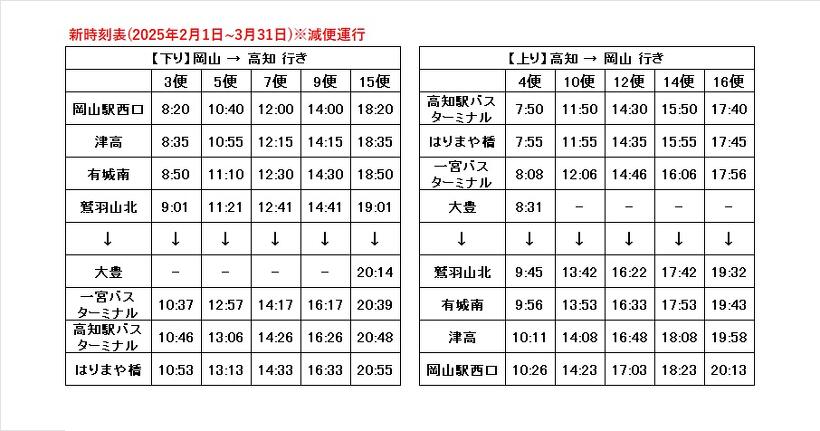 対象便: 岡山~高知線 高知発9:20、岡山発 16:40 運休いたします。