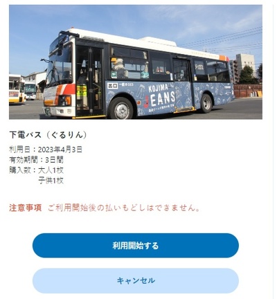 路線バス(児島~倉敷地区)や観光施設等がセットになった、ご旅行に便利なきっぷです。